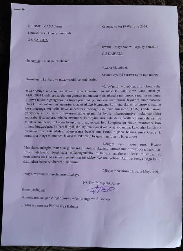Umwarimu wo mu Ishuri rya GS Kabuga riherereye mu murenge wa Rusororo mu karere ka Gasabo, yandikiye umuyobozi w’ikigo amugira inama, amusaba guhagarika imyitwarire mibi idakwiye kuranga abayobozi.