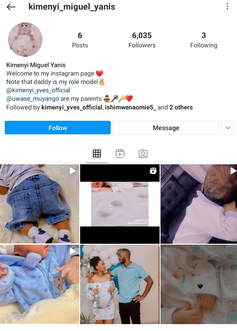 Umwana w’umuhungu w’imfura wa Kimenyi Yves na Miss Muyango bise Kimenyi Miguel Yanis akoze ibitamenyerewe mu Rwanda, aho kuri ubu amaze kugira abamukurikira barenga ibihumbi 6 nyuma y’iminsi 40 gusa amaze avutse.