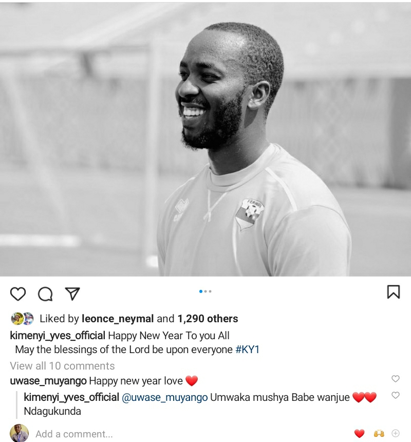 Mugihe ibyamamare hirya no hino bikomeje kwifuriza imiryango yabo,inshuti, n’abavandimwe babo  umwaka mushya mwiza wa 2021, Kimenyi Yves nawe yafashe akanya maze anyarukira kuri instagram aho yifurije abakunzi be umwaka mushya mwiza ndetse aboneraho kubwira umukunzi we, Uwase Muyango Claudine ko amukunda cyane.