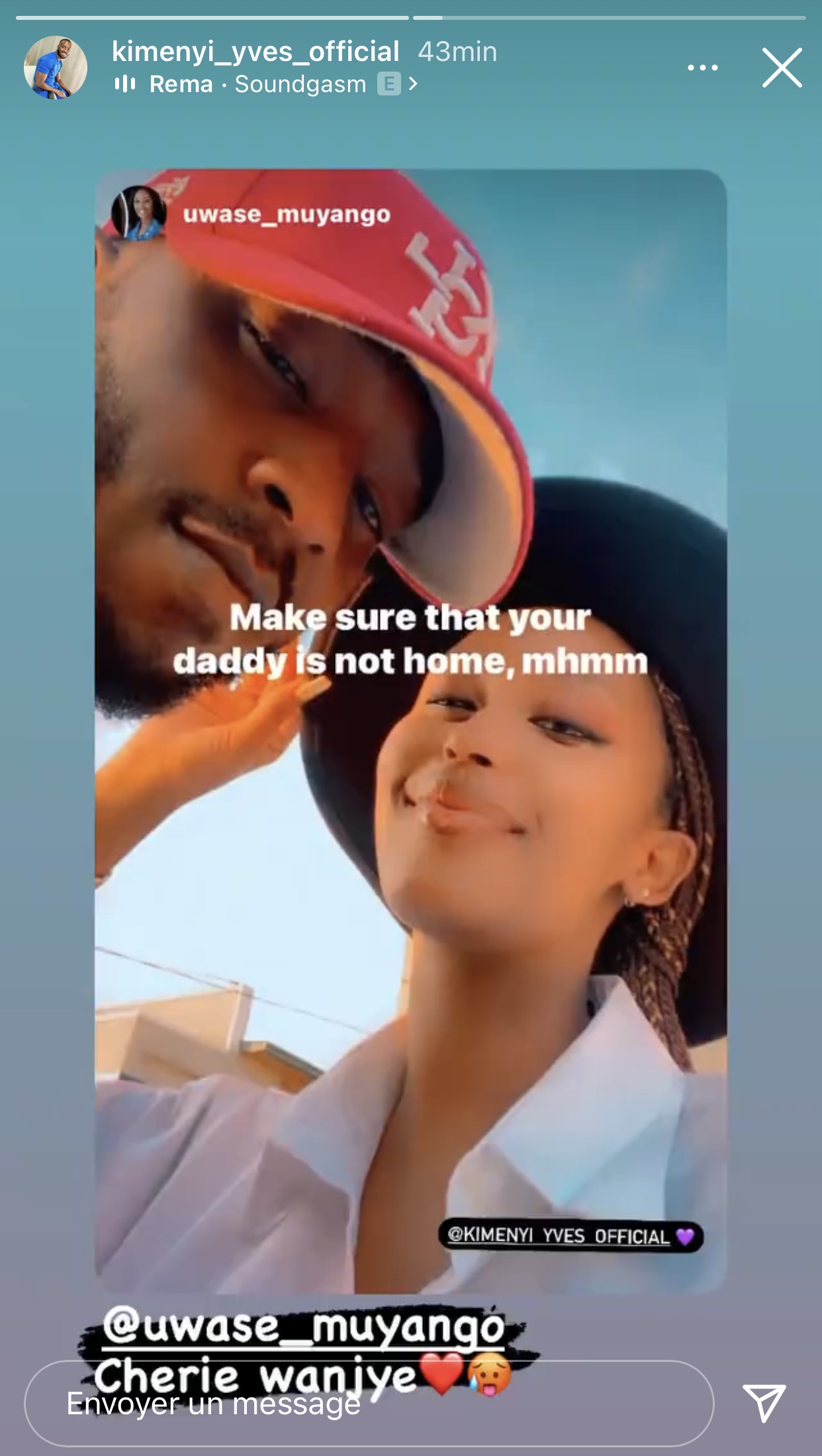 Nyuma y’amashusho Muyango yashyize kuri instagram ye, Kimenyi Yves ntiyaripfanye yahise amusubiza amagambo agira ati « @uwase_muyango Cherie wanjye🥵❤️ ».
