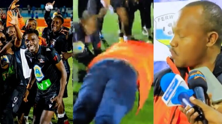 Ubwo umukino wari umaze kurangira, KNC yahise amanuka mu kibuga ajya aho abakinnyi be bari bari aho bahise bakora uruziga baramuzenguruka.