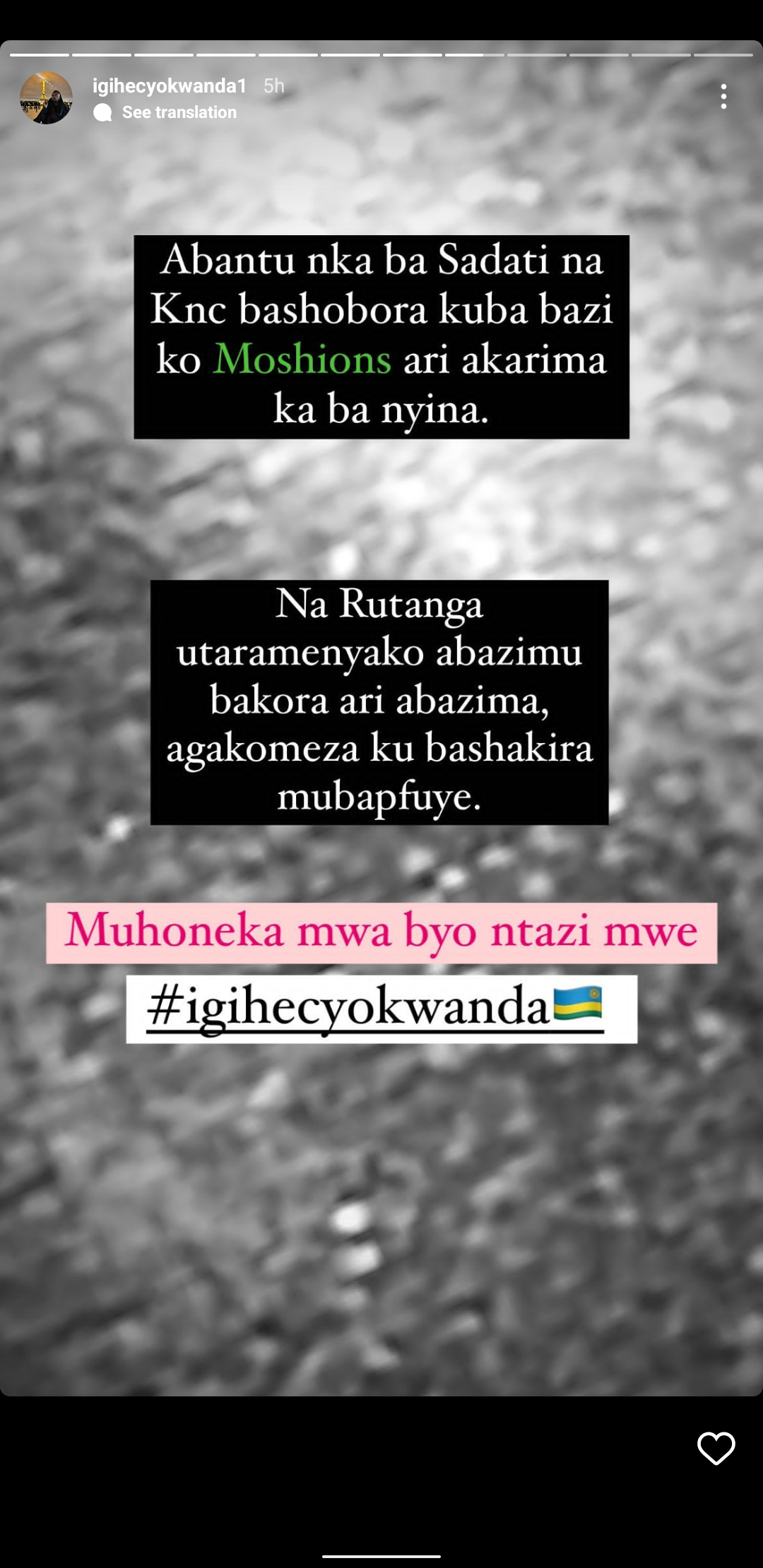 Mu butumwa yanyujije ku rukuta rwe rwa Instagram ahazwi nka Story, Moses yibasiye KNC avuga ko Monshion bayigize akarima kabo ndetse avuga ko ari ibyo atazi.