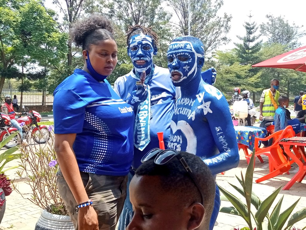 Abafana batandukanye ba Rayon Sports babukereye bisize amarangi ndetse bafite n’ibirango bya Rayon Sport biteguye kwakira abakinnyi bayo.