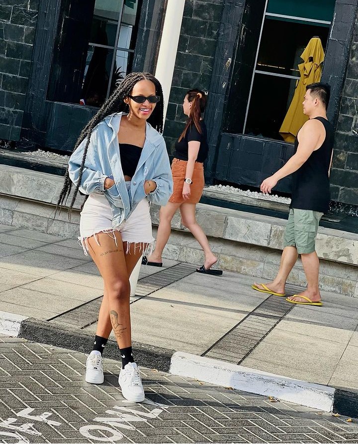‘Ku kibero cye burya hariho tatowaje’ uku ni ugushotorana pee,  Puculi yerekanye amafoto yambaye akajipo ka gufi cyane ndetse na tatuwaje iri ku kibero igaragara [AMAFOTO]