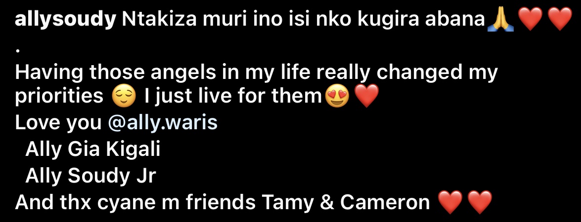 Nyuma yo gushyira hanze iyi videwo, Ally Soudy yayiherekesheje amagambo akurikira: