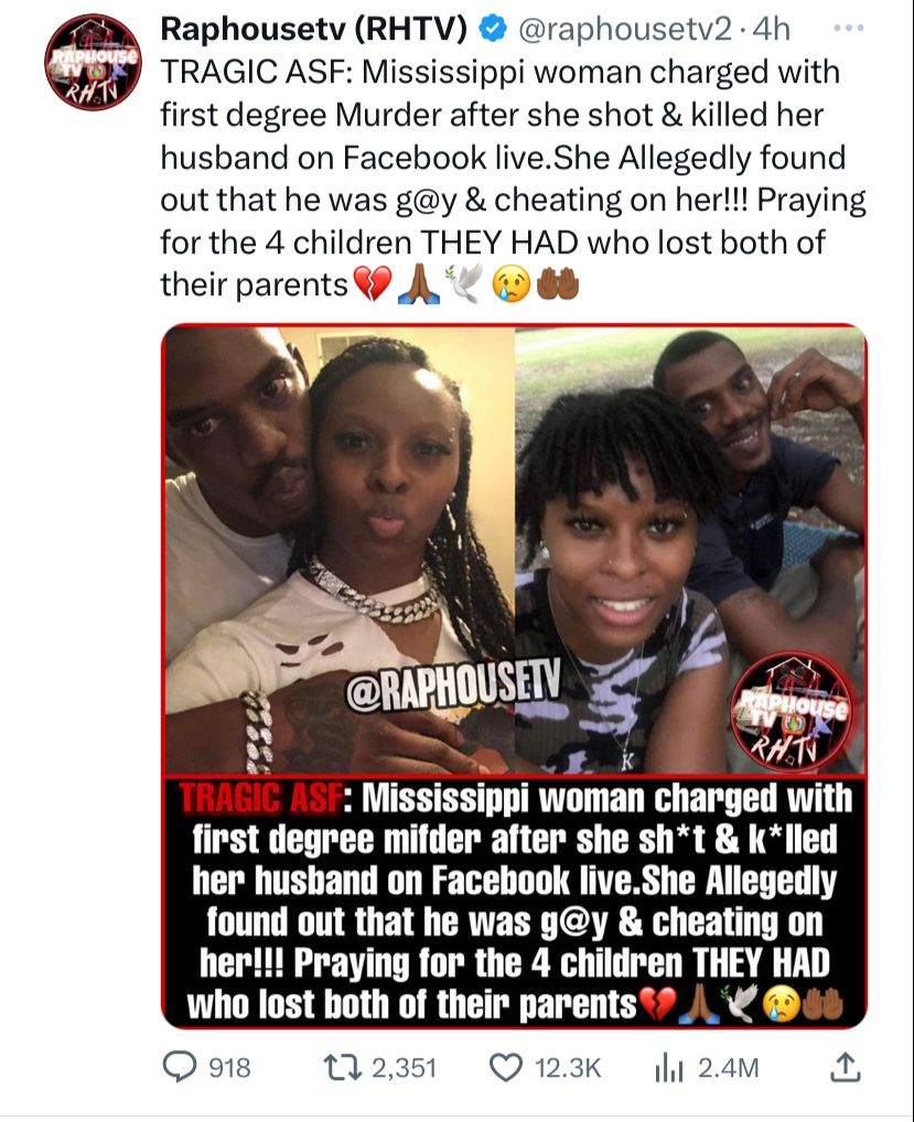 Amakuru akavuga ko uyu mugore n’umugabo we babanje kumara umwanya batongana ,bikarangira umugore arashe umugabo we, icyakora nanone hakaba inkuru yashyizwe hanze k’urubuga rwa twitter na Raphouse tv ivuga ko icyateye uyu mugore kurasa umugabo we ari uko yari amaze kuvumbura ko umugabo we yaryamana nabo bahuje igitsina akamuca inyuma .