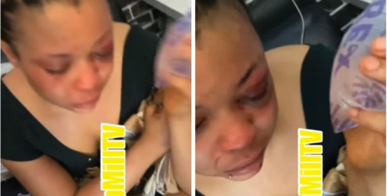Mu mashusho yagaragaye, umukobwa aba abafite ibishyundu mu maso ndetse afite ishashi irimo urubura imufasha kugabanya uburibwe.