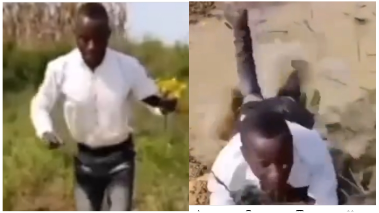 Nkuko bigaragara mu mashusho uyu musore yacaga mu nzira igoranye aho yagombaga kwambuka umugezi.Yashatse kuwa mbuka asimbutse agwamo imyenda ye irahindana.Bivugwa ko yari agiye gusura umukunzi we amushyiriye ururabo.