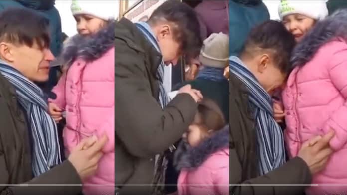 Umugabo wo muri Ukraine yateye benshi agahinda ubwo yariraga ari kumwe n’umwana we mbere y’uko batandukana kubera intambara.
