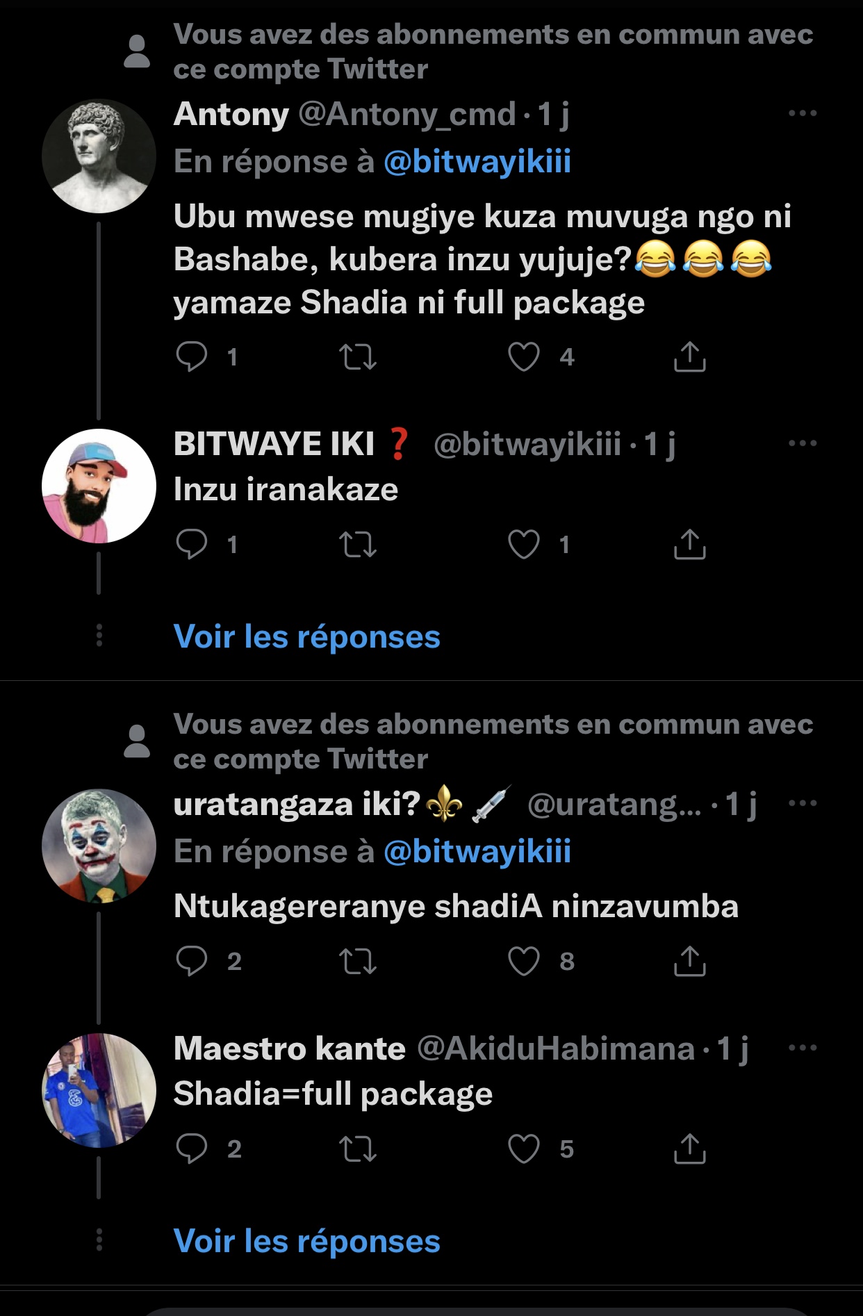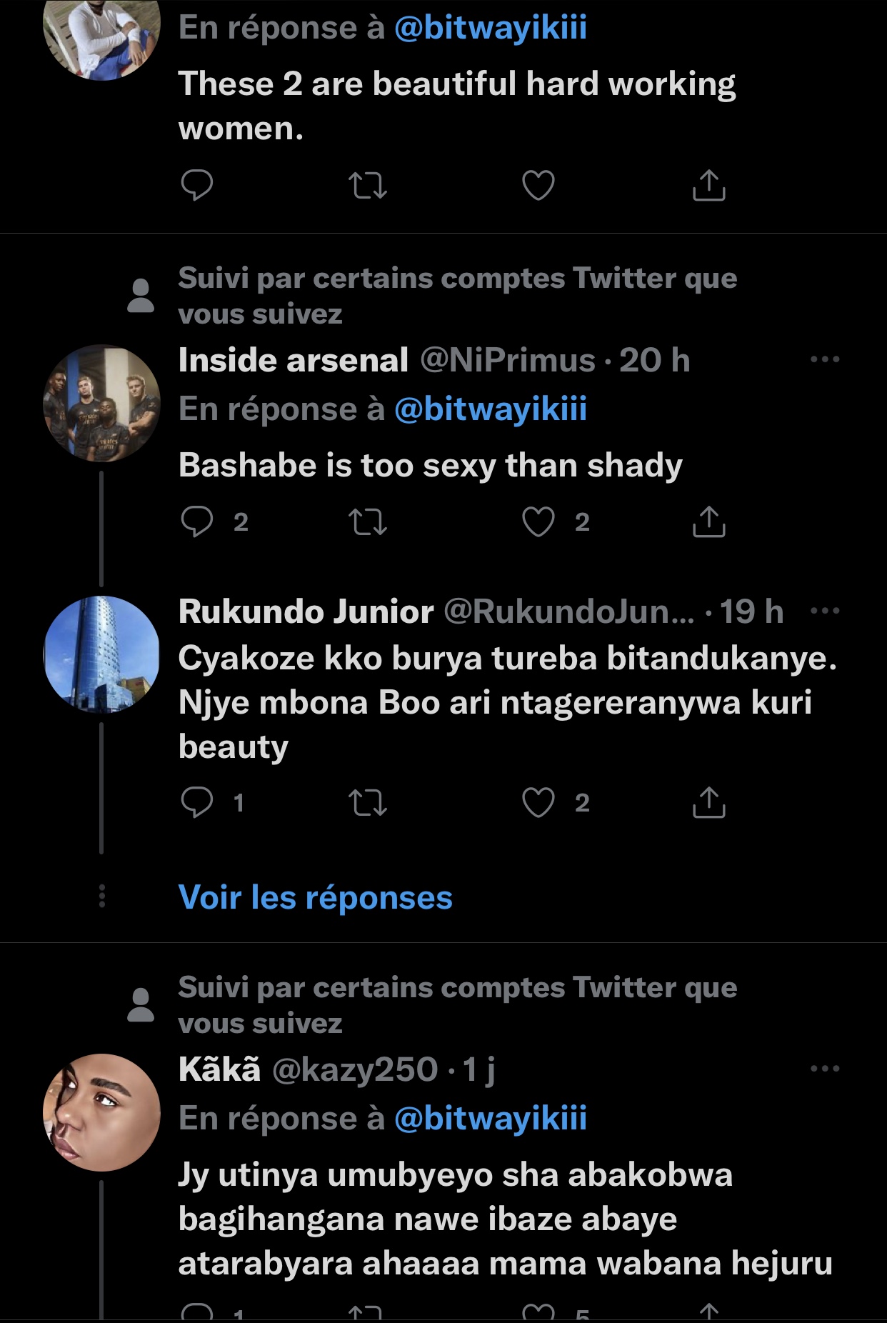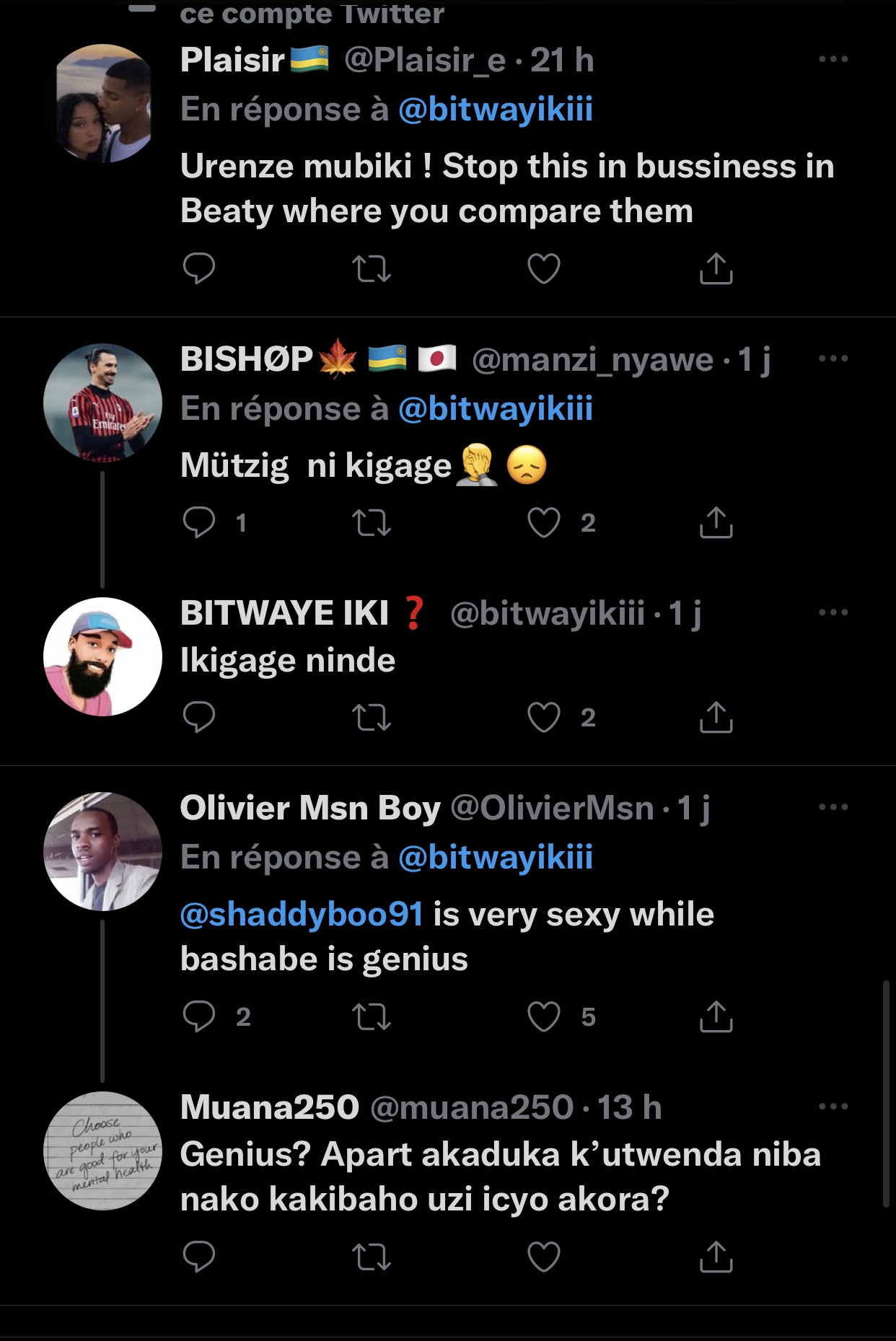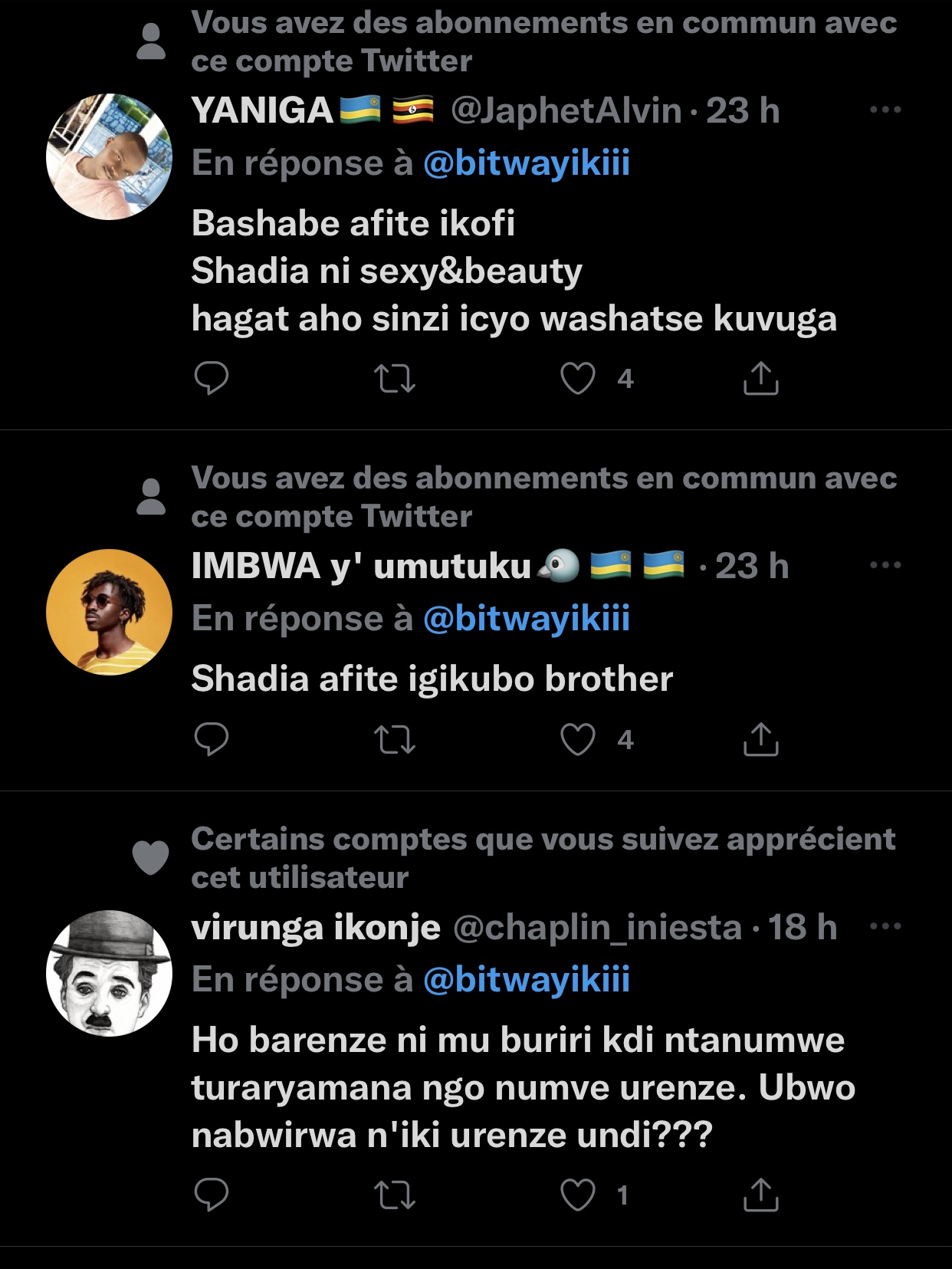 Umwe mu bakoresha Twitter witwa Bitwayiki yasabye bagenzi be bakoresha Twitter kumubwira urenze hagati ya Kate Bashabe na Shaddyboo.