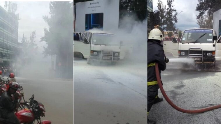 Kuri uyu wa Kabiri tariki 25 Mata 2023, imodoka yo mu bwoko bwa Mini Bus yafashwe n’ikongi y’umuriro irashya maze abantu bagira ubwoba.