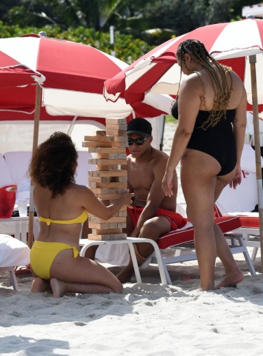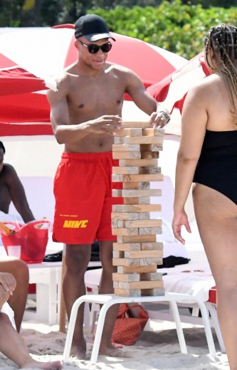 Kylian Mbappé usanzwe ukinira ikipe ya Paris Saint-Germain amaze iminsi ashyira amafoto hanze abinyujije ku mbuga nkoranyambaga ari wenyine gusa ku munsi w’ejo hashyizwe hanze amafoto ari kumwe n’inshuti ze z’abagore bambaye Bikini bakina umukino witwa ‘Jenga’.
