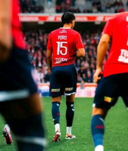 Amafoto Leny Yoro mu mukino bahuyemo na Arsenal FC