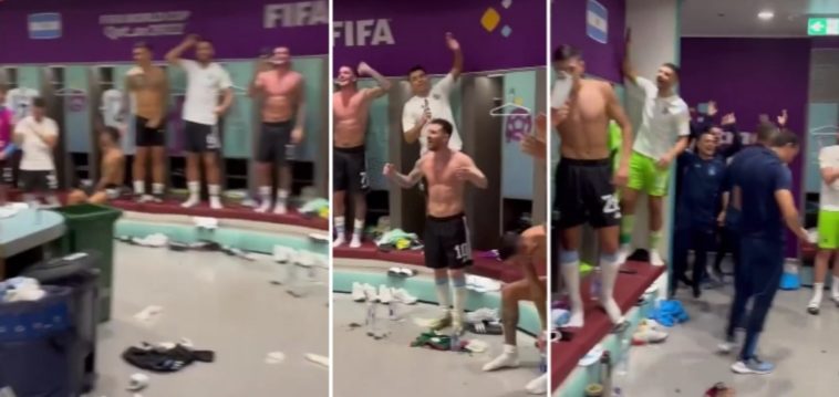 Abakinnyi ba Arijantine bageze mu rwambariro barishimye birabarenga maze kizigenza Lionel Messi akuramo umwambaro we wo hejuru.