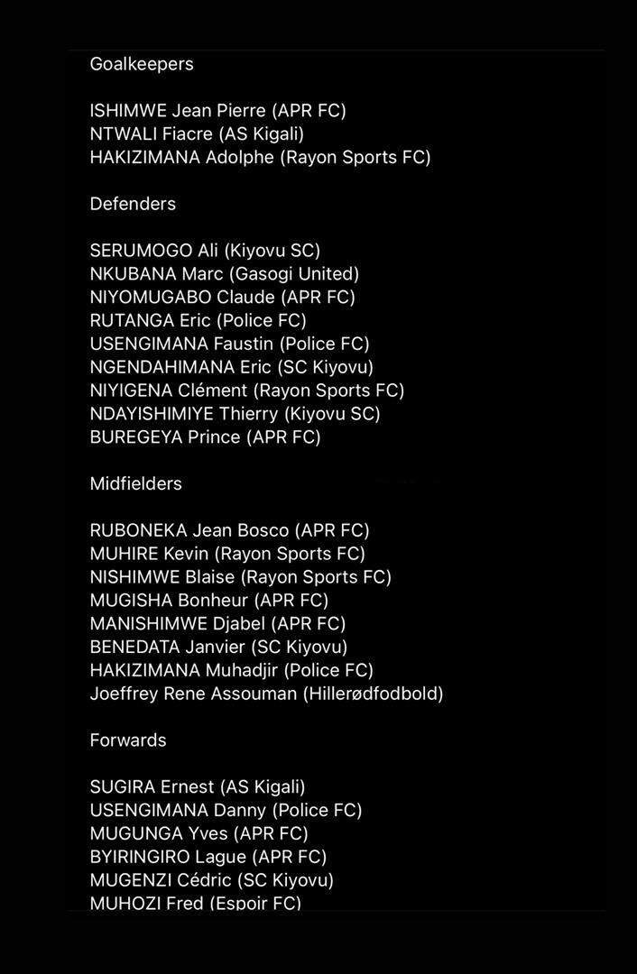 List y’abakinnyi Mashami Vincent azifashisha mu mikino ibiri ya gishuti na Guinea i Kigali !
