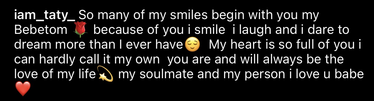 Uwase Angel wamamaye ku izina rya Mama Cyangwe, abinyujije kuri instagram ye yateye imitoma Papa Cyangwe ashimangira ko nta wundi mukunzi akeneye uretse we mu buzima bwe. Ni nyuma yuko Mama Cyangwe yari amaze gushyira hanze ifoto ikurikira ya Papa Cyangwe.