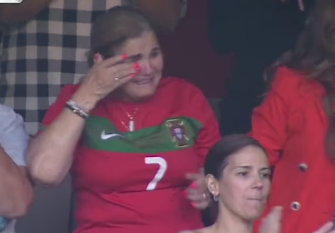 Ubwo Cristiano Ronaldo yasindaga igitego cye cya mbere muri bine bya Portugal, mama we byamunaniye kwihangana asuka amarira.