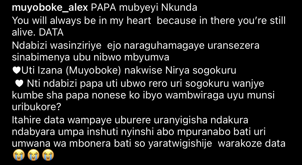 Abinyujije ku rukuta rwe rwa instagram, Muyoboke Alex yatangaje amagambo akurikira:
