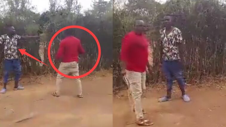 Muri aya mashusho wumvaga abandi ku ruhande bashyigikiye uyu mugabo ngo ni amukubite n’abo baraza ku mumufasha gusa ababonye ibi bibajije icyo uyu mugabo yaba ashinzwe ku buryo aca inkoni agakubita umugabo mugenzi we nta mpamvu.