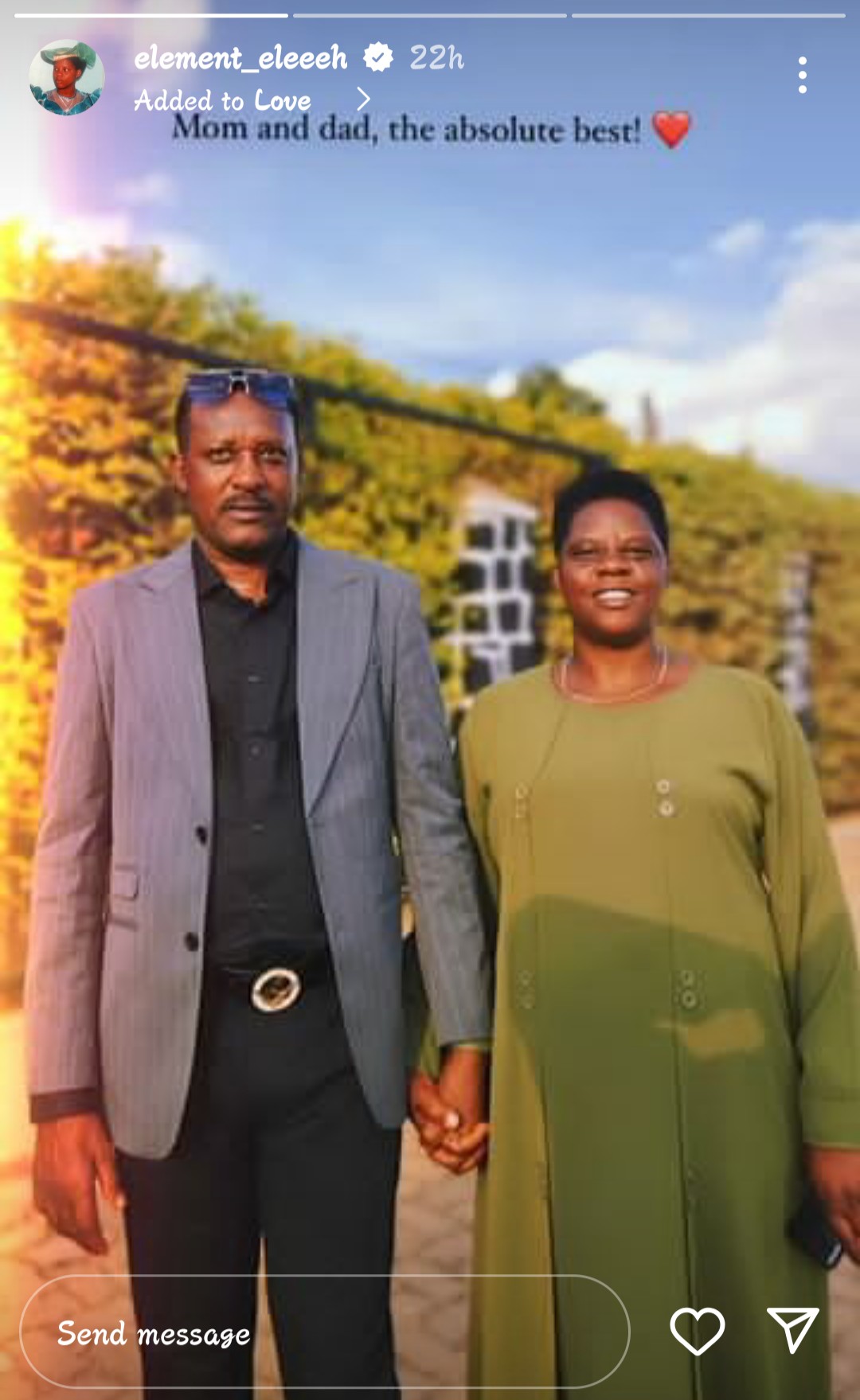 Abinyujije ku rukuta rwe rwa Instagram ahajya sitori, Elements yasohoye amafoto abiri yerekana ababyeyi be.