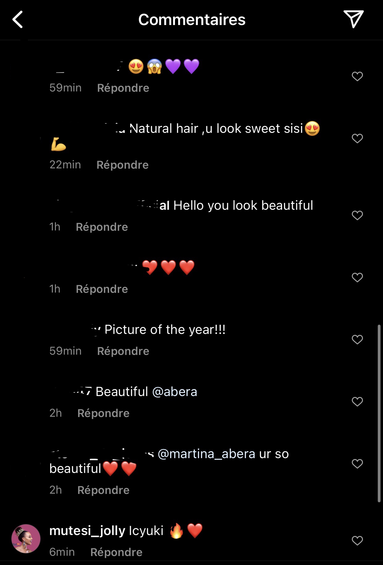 Umunyamakuru Martina Abera ukorera RBA yashyize hanze amafoto ye kuri instagram maze abafana be sukwirekura buri wese agira icyo ayavugaho bitewe nuko yayabonye. Mu birekuye bavuga kuri aya mafoto harimo na Miss Mutesi Jolly nawe wagaragaje amarangamutima ye.