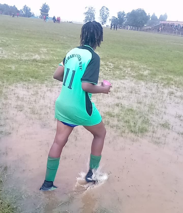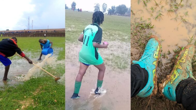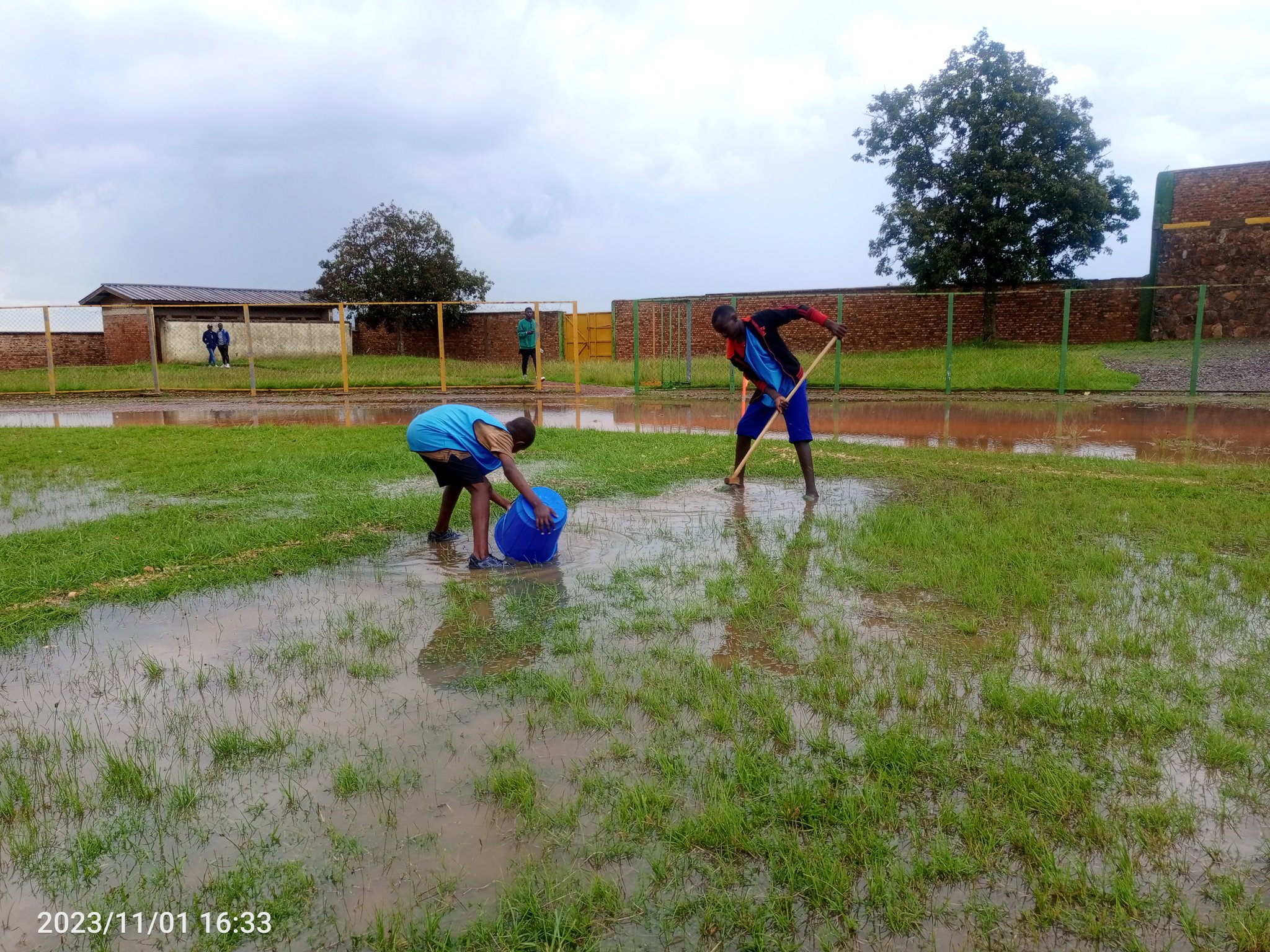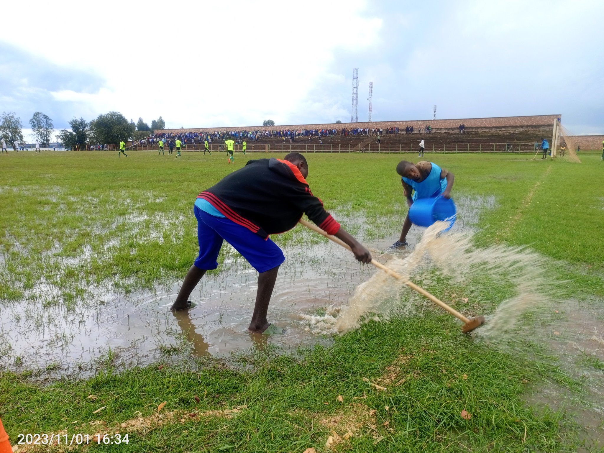 Mbere yo gukina babanza gukoropa! Sitade ya Gicumbi yabaye ikusanyirizo ry’amazi y’imvura yo mu karere [AMAFOTO]