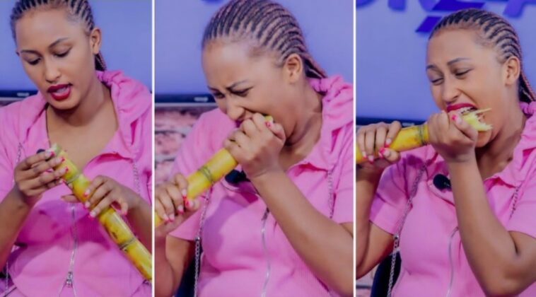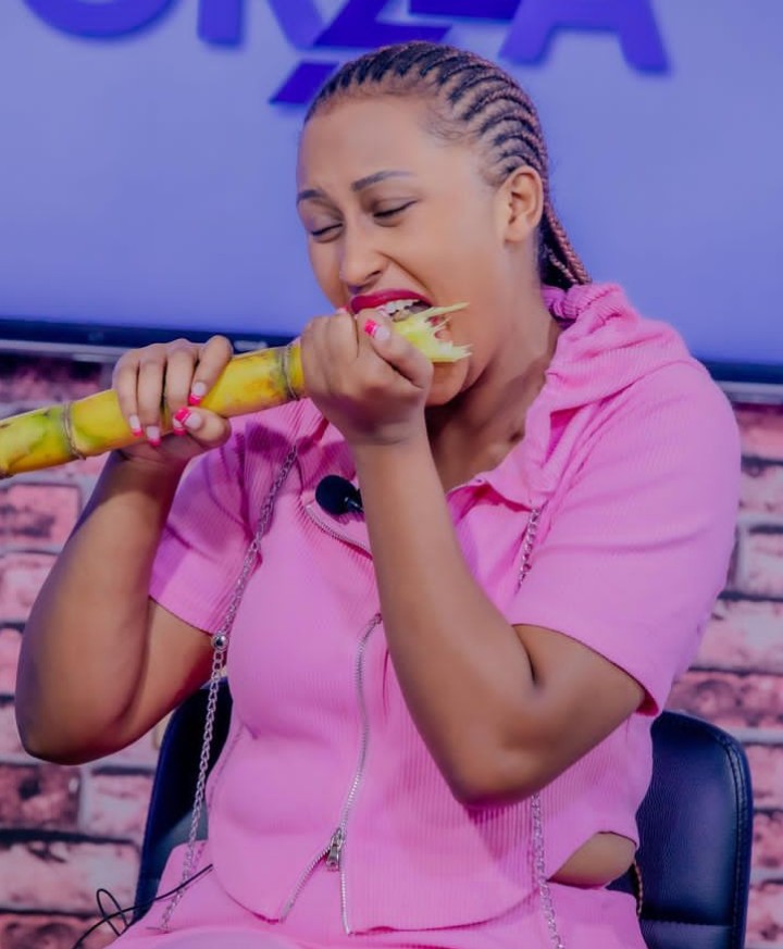 Miss Uwase Muyango nyuma y’iminsi 2 gusa yinjiye mu mwuga w’itangazamakuru ku Isibo Tv mu kiganiro Take Over akorana na Mc Buryohe yahise amwak igisheke.