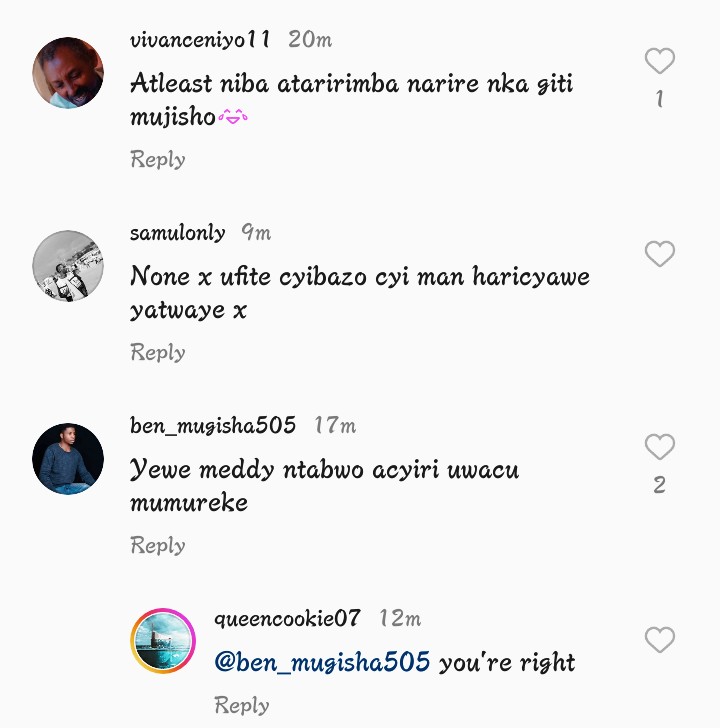 Baravuga ko Meddy asuzugura kubera ukuntu bamuvuga ariko we akaba atabasubiza, ati ” wagirango tuba turi kuvuga ibuye”. Bati “basi ajye arira nka The Ben ariko areke kudusuzugura”.