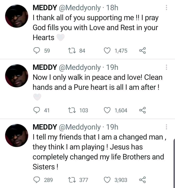 Tariki 28 Nyakanga 2021, Meddy yasangije abamukurikira ijambo ry’Imana ati; “Wenda hari igihe muzaba mutakibuka indirimbo zanjye, ndasenga ngo muzibuke aya magambo”