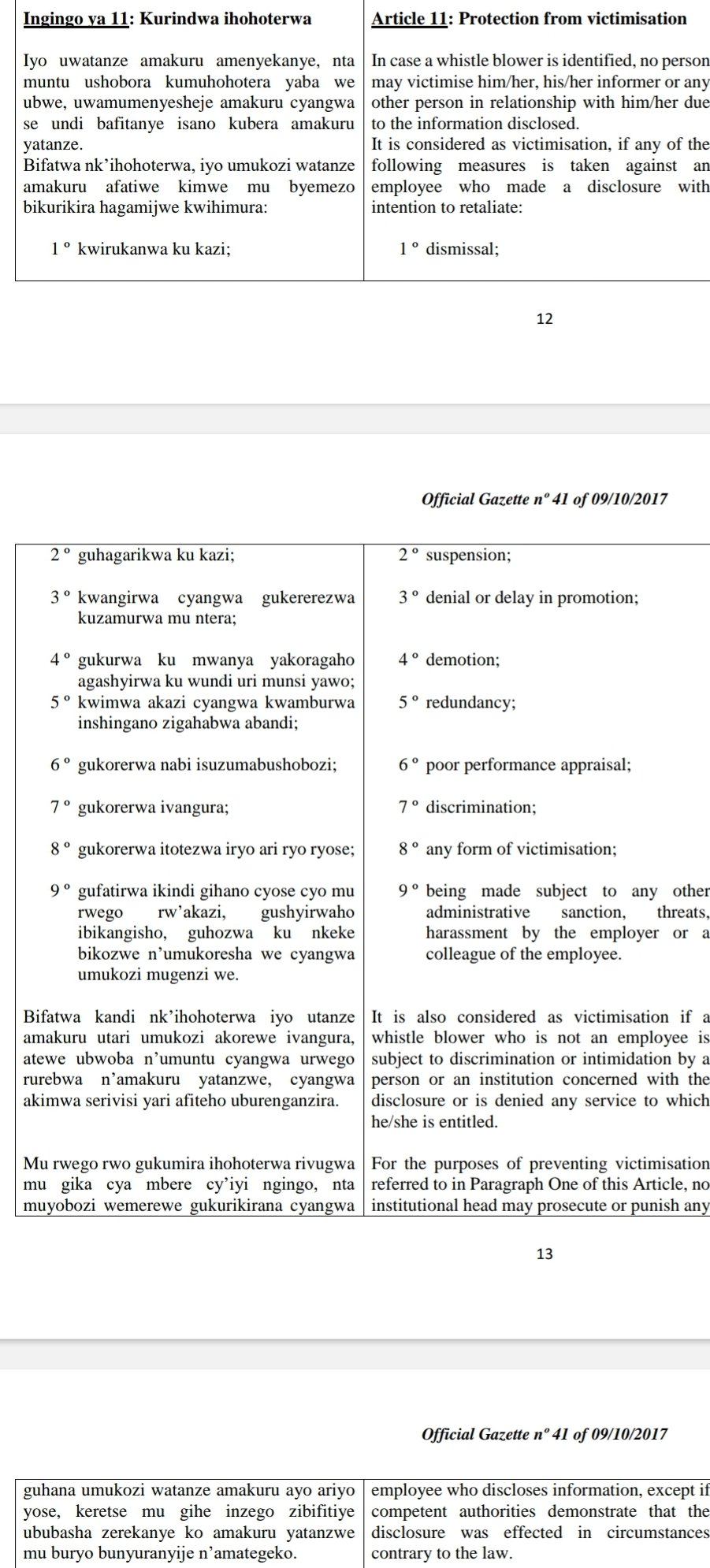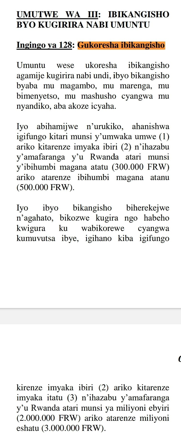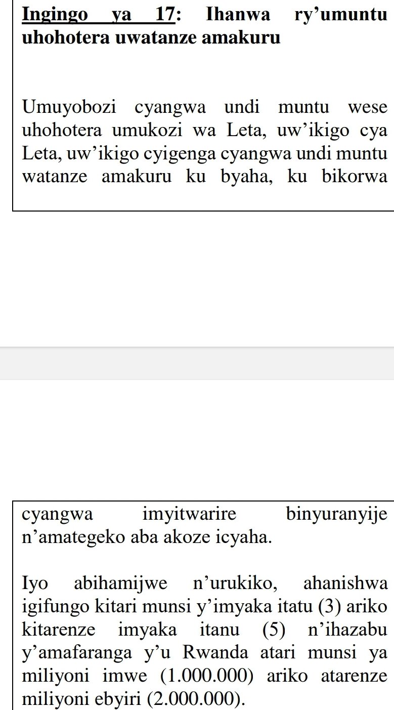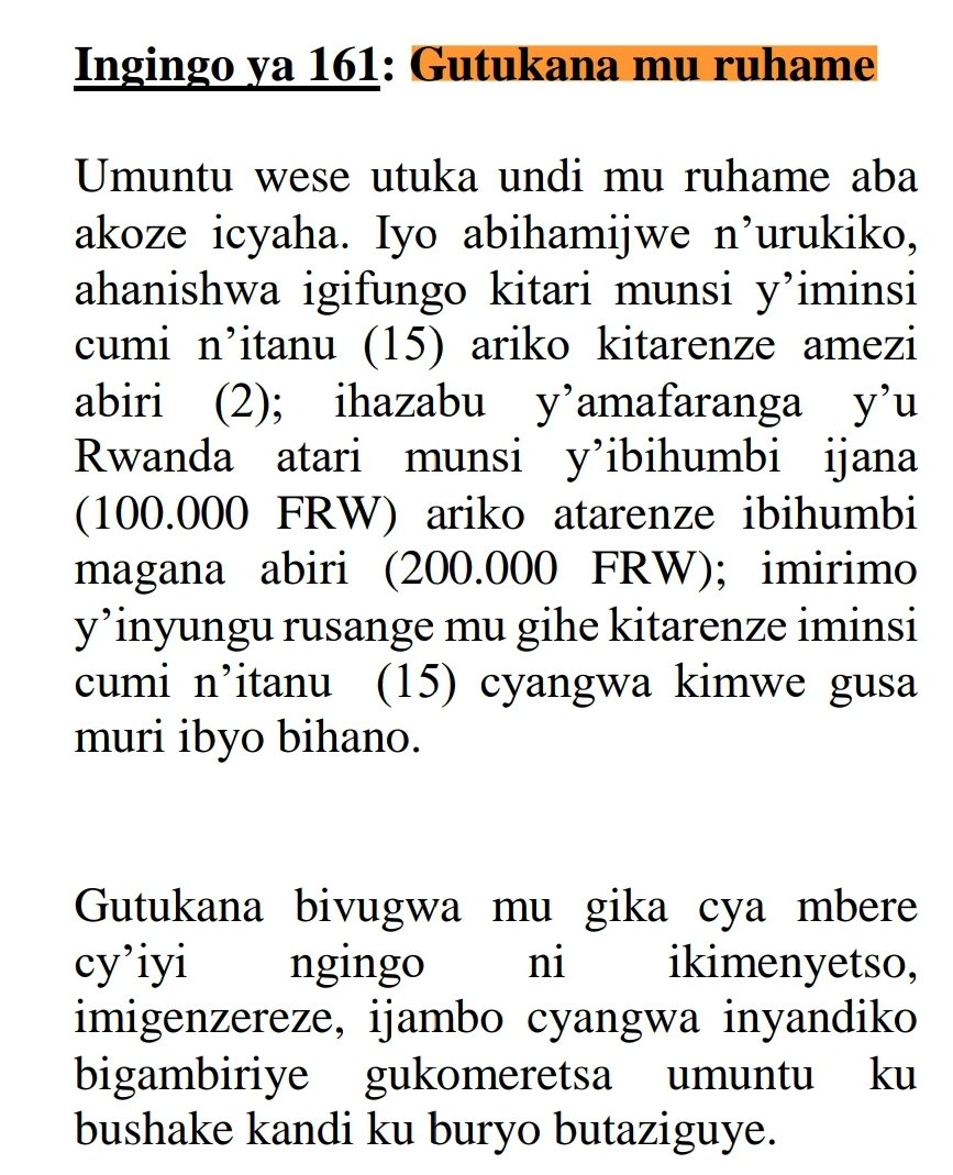 Izi ngingo zikurikira ni zimwe mu ngingo zikubiyemo ibihano bihanishwa aba hamwe n’ibyo byaha byavuzwe hejuru.