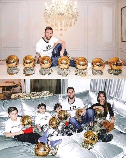 Aya ni amwe mu mafoto bafotowe ku munsi wejo Messi n’umuryango we bagaragara bishimye buri umwe wese afite Ballon D’Or ye, ibintu byaje kwishimrwa na benshi.