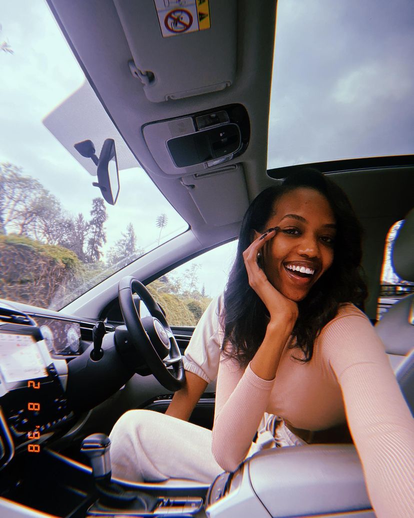 Miss Iradukunda Elsa yagaragaye ari mu modoka ye akanyamuneza ari kose (Amafoto)