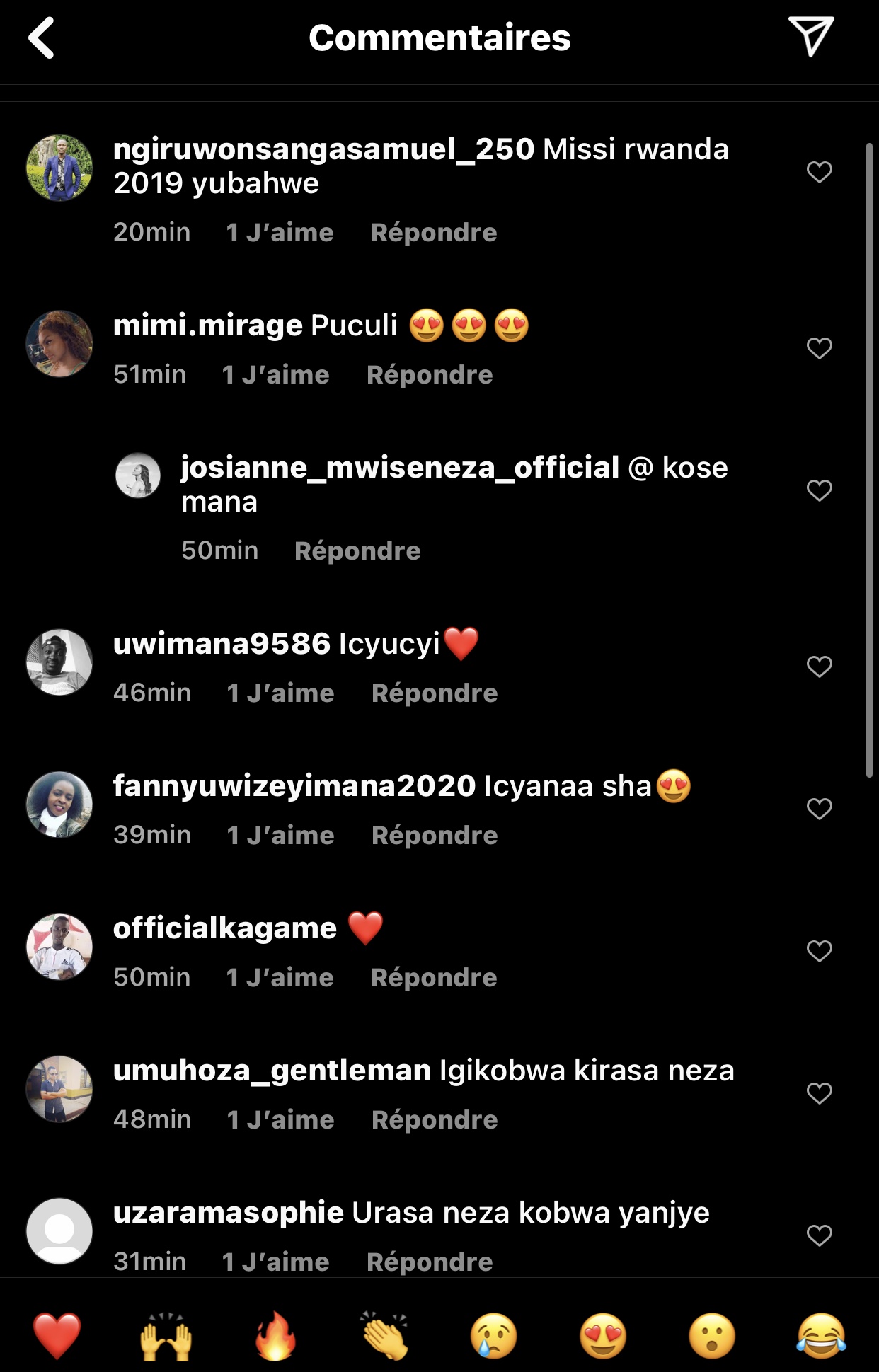 Miss Mwiseneza Josiane wegukanye ikamba rya Miss Popularity 2019 yatunguye abamukurikira kuri instagram ye maze ashyira hanze ifoto imugaragaza yisize ibirungo (makeup) aho bamwe bavuze ko yari afite ubwiza budasanzwe.