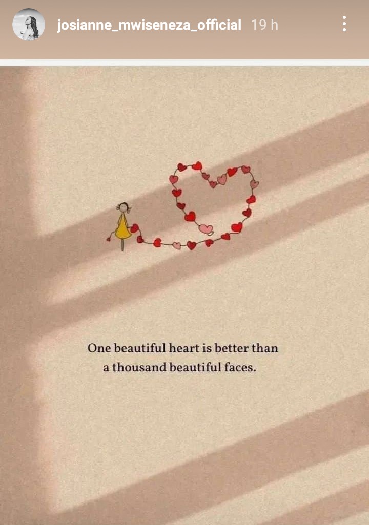 Abinyujije ku rukuta rwe rwa Instagram, Miss Josiane yagize ati “Umutima mwiza umwe uruta ubwiza bw’isura ibihumbi.”