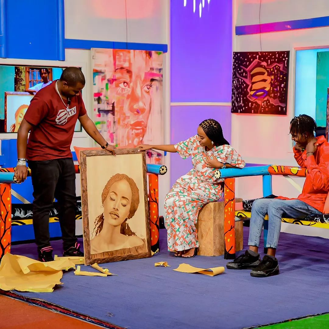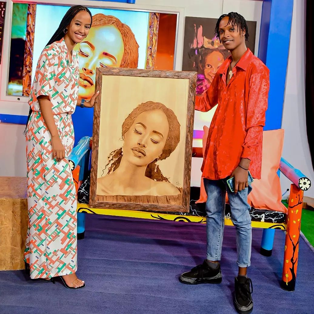 Miss Nishimwe Naomie wegukanye ikamba rya Miss Rwanda 2020 yahawe impano n’umwe mu basore bakora ibihangano bishushanyijr witwa Shakuru ari n’umufana we.