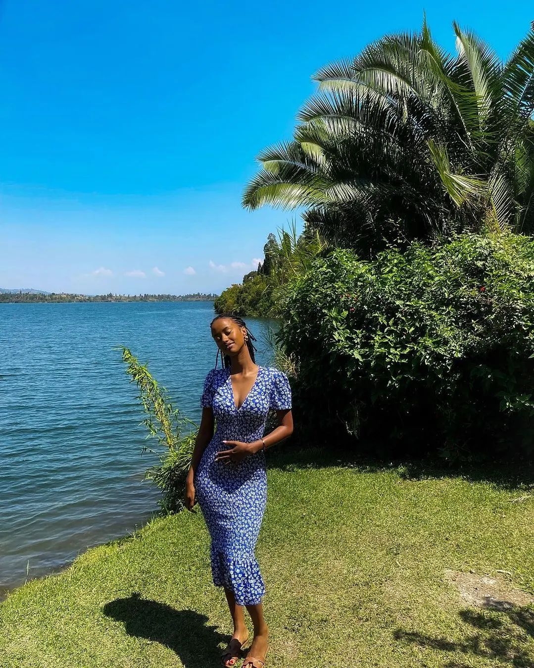Naomi yari yambaye ikanzu ndende ariko igaragaza mu gituza cye aho bigaragara ko yari yasohokeye ku mazi magari nkuko yabyerekanye ku rukuta rwe rwa Instagram.