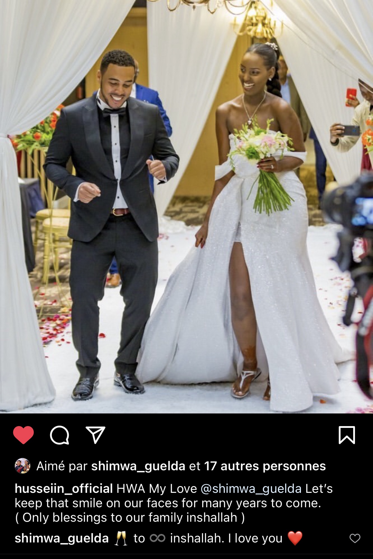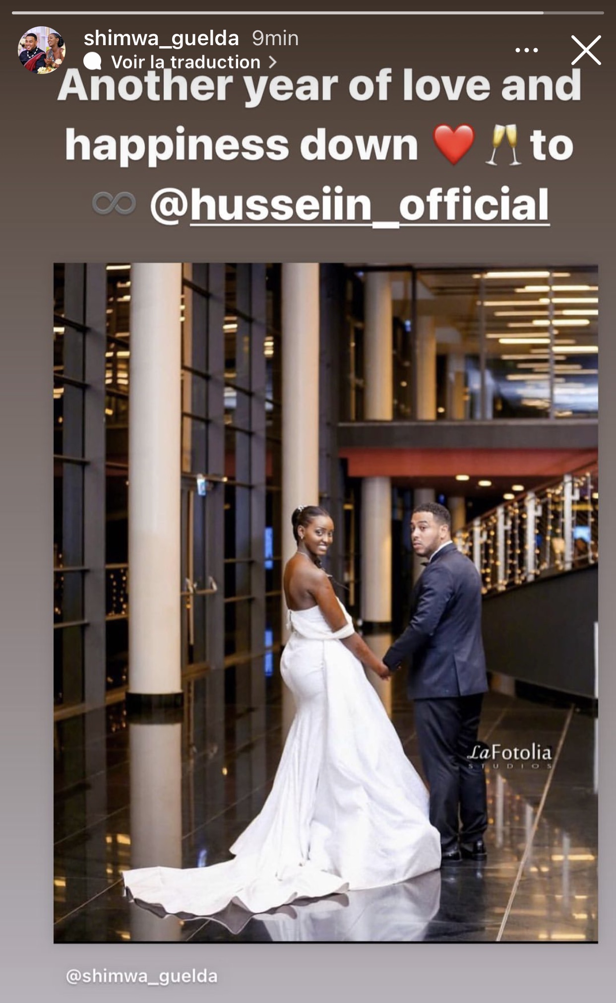 Miss Shimwa Guelda wegukanye ikamba rya Miss Heritage mu mwaka wa 2017 abinyujije kuri story ya instagram ye yanditse amagambo akomeye yifuriza umugabo we isabukuru nziza y’imyaka 2 ishize bamaze barushinze. Hari tariki ya 22 Ukuboza 2019 nibwo Miss Shimwa Guelda n’umugabo we, Hussein, babaye umwe maze bemeranya kubana nk’umugabo n’umugore. Kuri uyu wa 22 Ukuboza 2021, imyaka 2 iruzuye neza Miss Shimwa Guelda na Hussein babana nk’umugabo n’umugore.