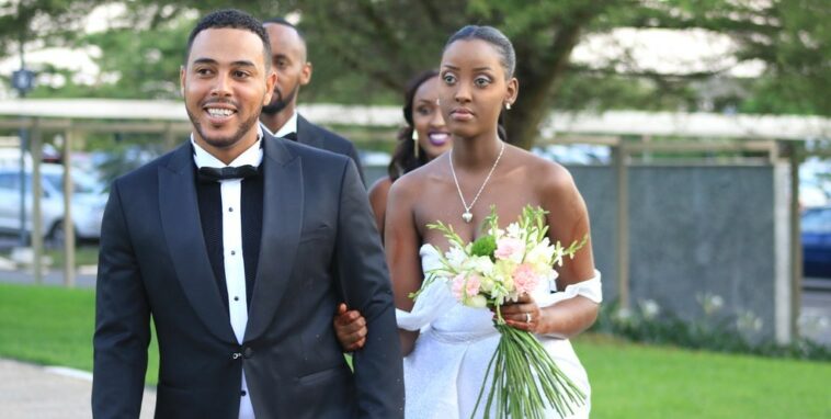 Miss Shimwa Guelda wabaye Nyampinga w’Umurage n’Umuco ibizwi nka Miss Heritage,  muri Miss Rwanda 2017 na Habimana Hussein wabaye umuyobozi ushinzwe Tekinike muri FERWAFA bari mu byishimo byo kwibaruka ubuheta.