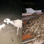 Ibi ntibisanzwe:Intama zatawe muri yombi zizira kurya ikirundo cy’amafi akaranze