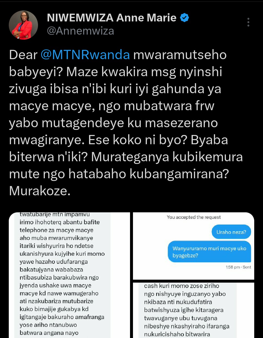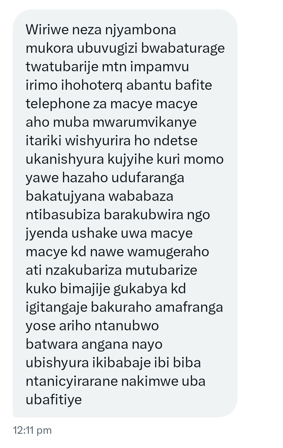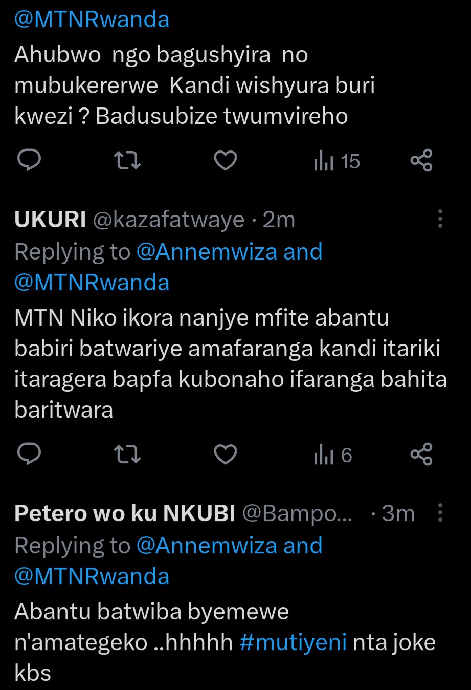 Abahuye n’icyo kibazo bandikiye umunyamakuru Anne-Marie Niwemwiza bamusaba kubabariza muri MTN.