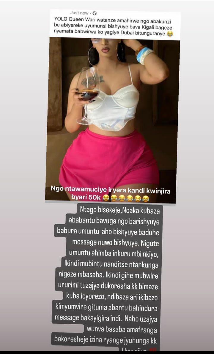 Abinyujije ku rukuta rwe rwa Instagram, Yolo The Queen yagaragaje ko yababajwe n’ibyo bamuvuzeho by’uko yatumiye abantu mu birori by’isabukuru ye y’amavuko, ariko bahagera bagasanga yigiriye Dubai.