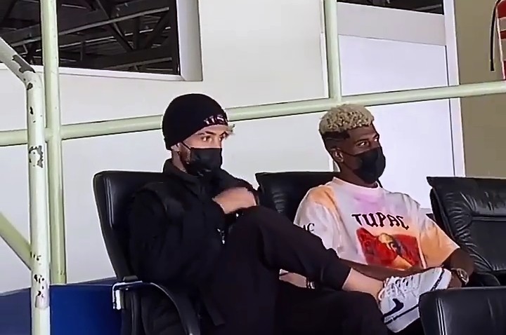 Yussef yari yambaye ingofero mu mutwe kandi yari yicaye iburyo bwa mugenzi we Ayoub, bari bicaye bari kumwe na Perezida w’ikipe ya Rayon Sports Uwayezu Jean Fidel wari wicaye ibumoso bwa Ayoub.