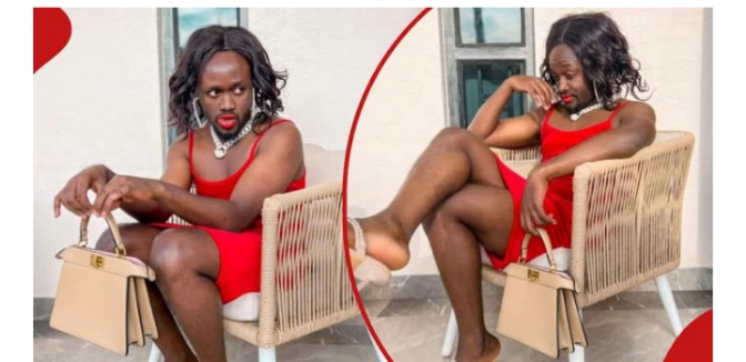 Abinyujije ku rukuta rwe rwa Instagram uyu mugabo yashyize hanze ifoto yambaye agakanzu kamwegereye gatukura ndetse n’iminwa yayigize imituku tuku, yambaye amaherena ibinigi mu ijosi ndetse afashe nagakapu ku kubikora tumwe dutwarwa tukagirwa ni gitsina gore.