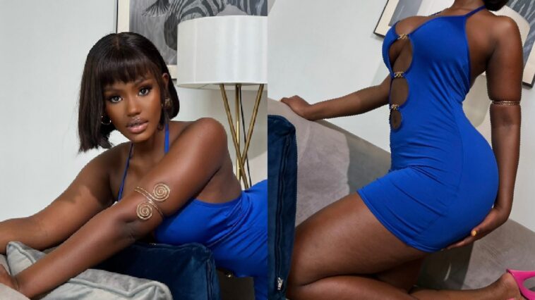 Ni mu mafoto yashyize hanze yambaye agakanzu kamwegereye gafite ibara ry’ubururu.