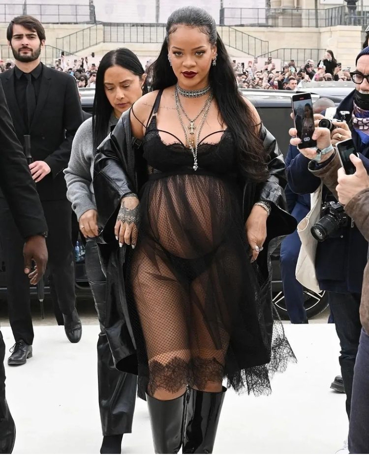 Umuhanzikazi Rihana wamamaye muri America yongeye kuvugisha abatari bake kubera imyambaro yaserukanye mu gitaramo kiswe ‘Dior Show’ ( Paris Fashion week 2022)