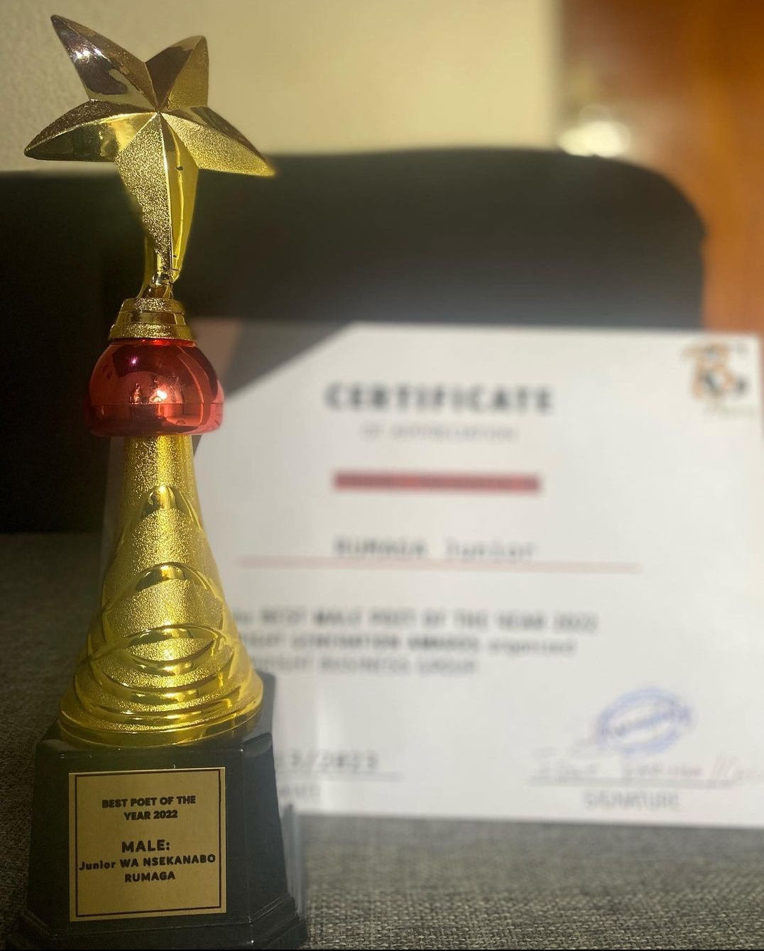 Junior Rumaga iki gihembo n’igihembo cy’umusizi mwiza w’umwaka wa 2022.