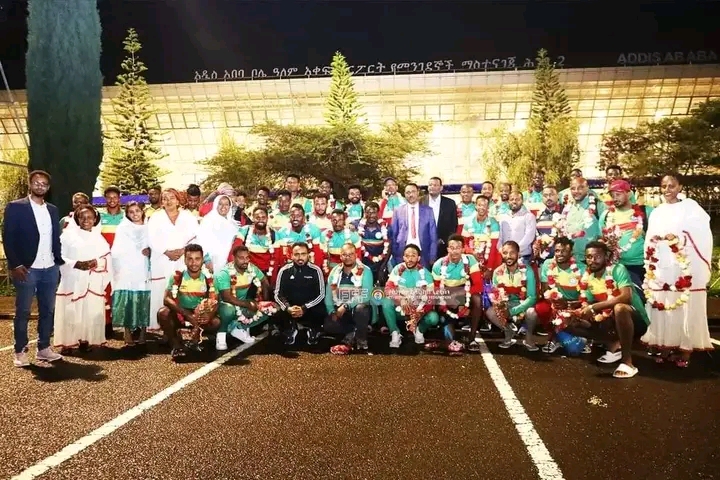 Ikipe y’igihugu ya Ethiopia nyuma yo kwerekeza mu gikombe cy’Afurika cy’abakina imbere mu gihugu batsinze u Rwanda igitego 1-0, bakiriwe nk’abami ubwo bageraga iwabo.