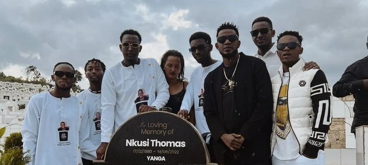 Umunyabigwi mu gusobanura filime Ntusi Thomas uzwi ku mazina ya Yanga uherutse kwitaba Imana, umuvandimwe we Junior Giti ari kumwe n’abandi basobanuzi ndetse n’ibindi byamamare basuye igituro cye mu irimbi i Rusororo aho aruhukiye.