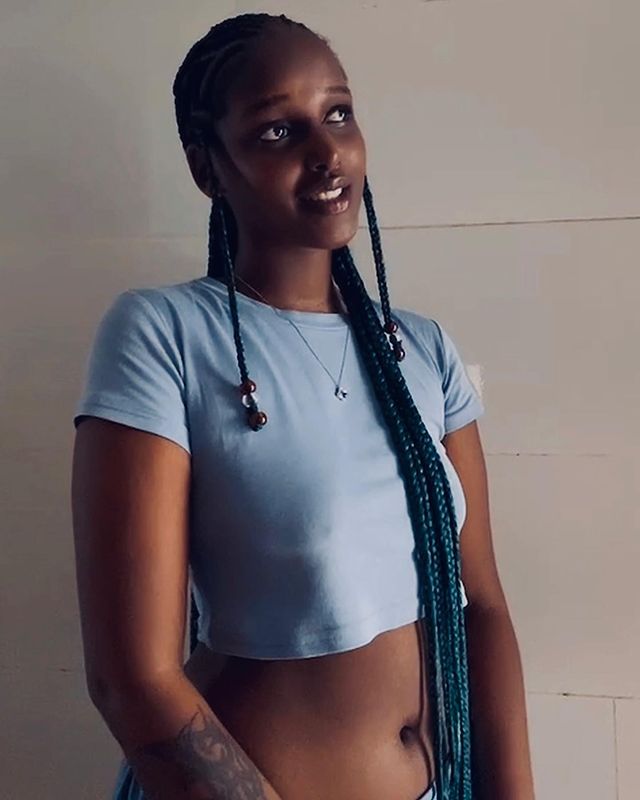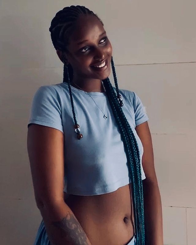 Abinyujije ku rukuta rwe rwa Instagram, Shazz yasohoye amafoto atatu yafashwe mu gihe kimwe agaragaza igice cye cy’ahagana ku nda kizwi nk’umukondo.