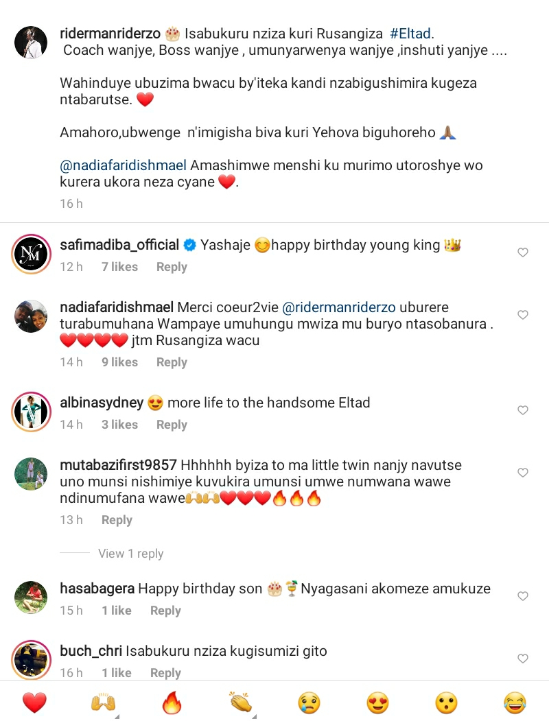 Uyu muhanzi yifashishije urukuta rwe rwa instagram yashyizeho ifoto y’umuhungu we maze yandikaho agaragaza ko umwana we ari byose kuri we ati”Isabukuru nziza Rusangiza Eltad ,Coach wanjye ,Boss wanjye, umunyarwenya wanjye,inshuti yanjye .Wahinduye ubuzima bwacu iteka kandi nzabigushimira kugeza ntabarutse.Amahoro,ubwenge, n’imigisha ya Yehova biguhoreho”.